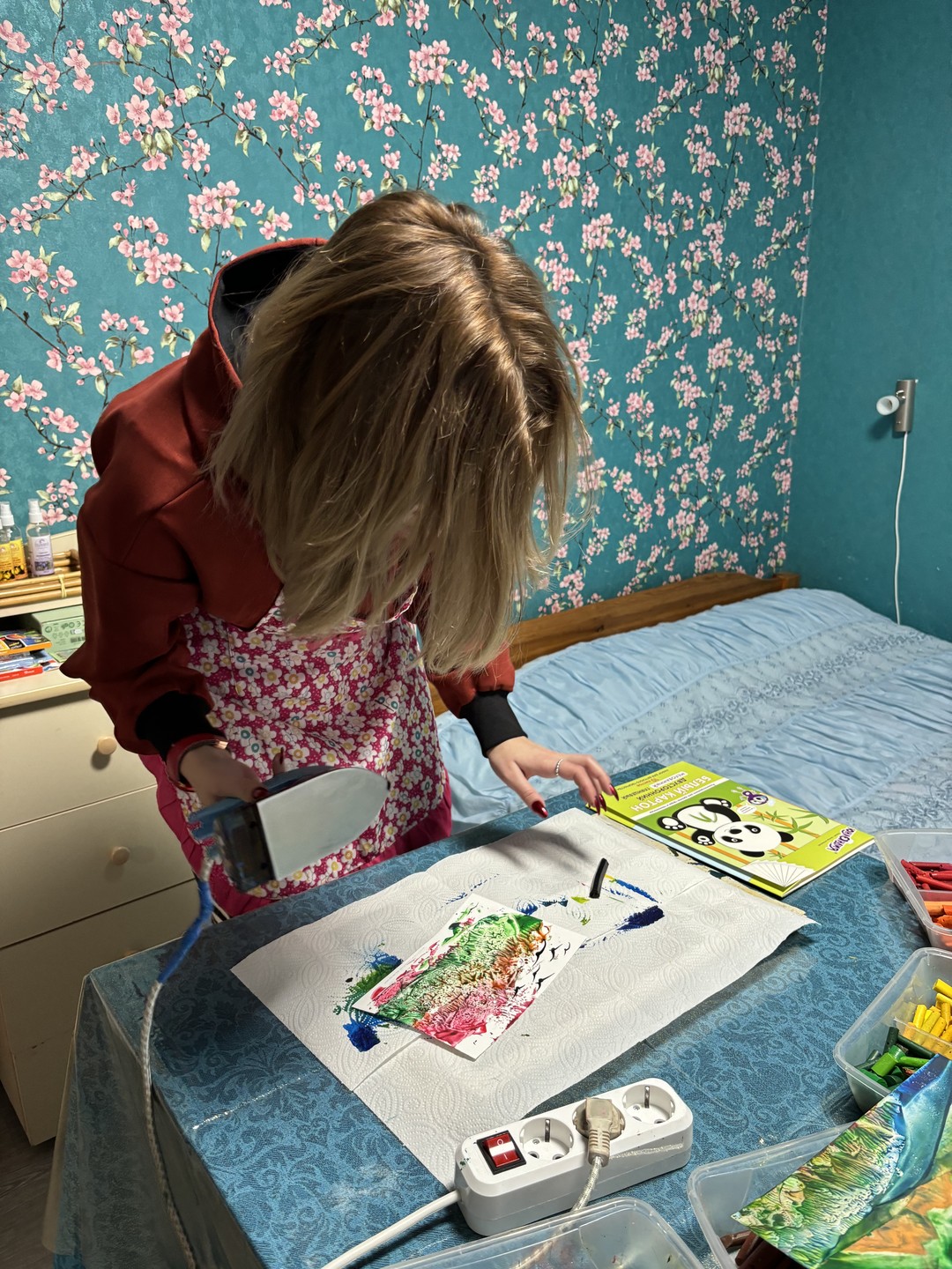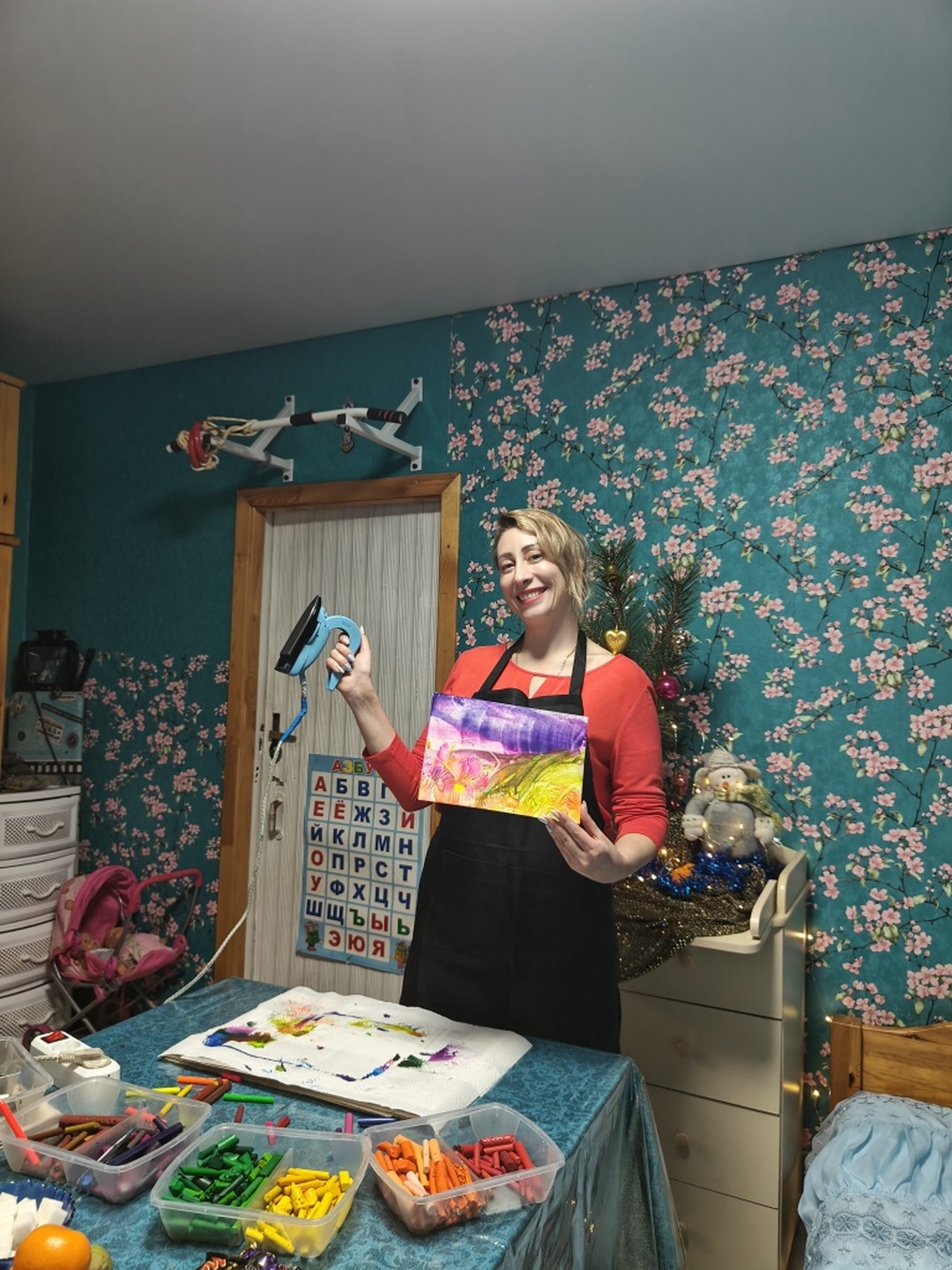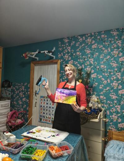 - Вы можете прийти с детьми до 5 лет — для них покупать билет на мастер-класс не нужно. Они не будут рисовать утюгом, но смогут попрыгать на батуте, порисовать мелками на асфальте и поиграть в игрушки, которые я предоставлю