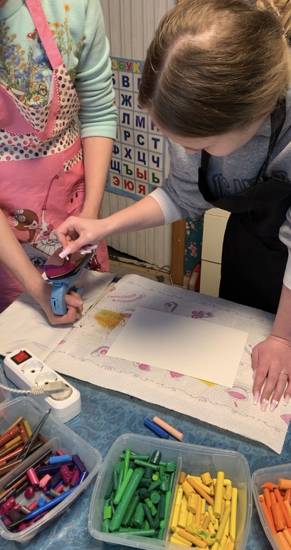 - Мы будем писать картины как специально предназначенным для энкаустики утюгом, так и обычным «советским»