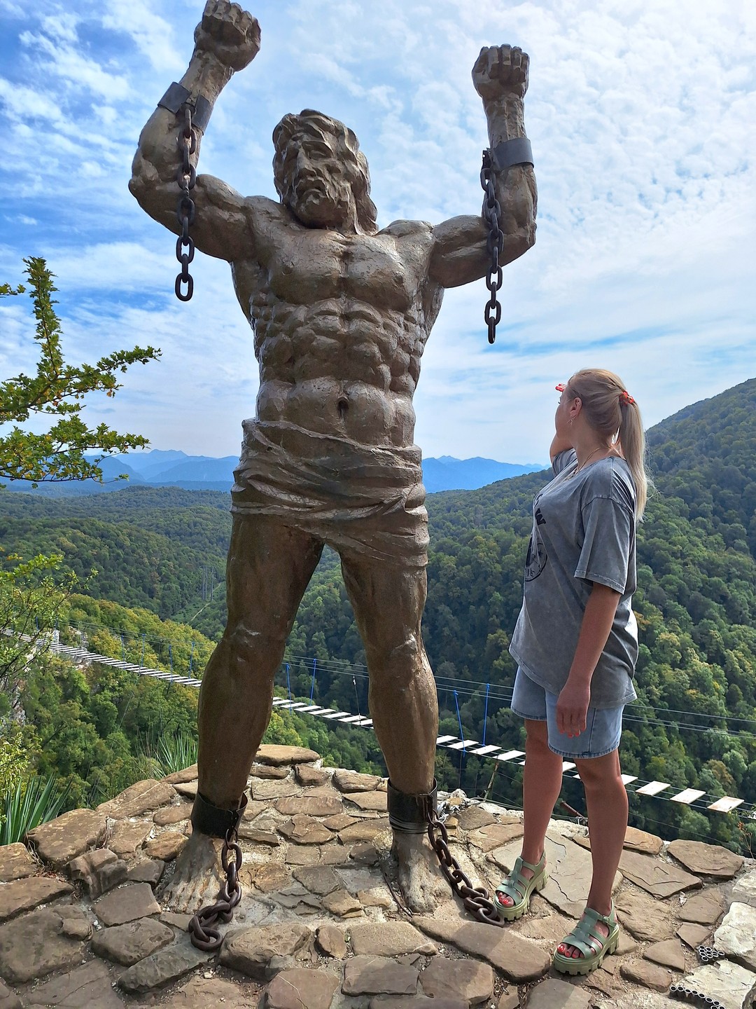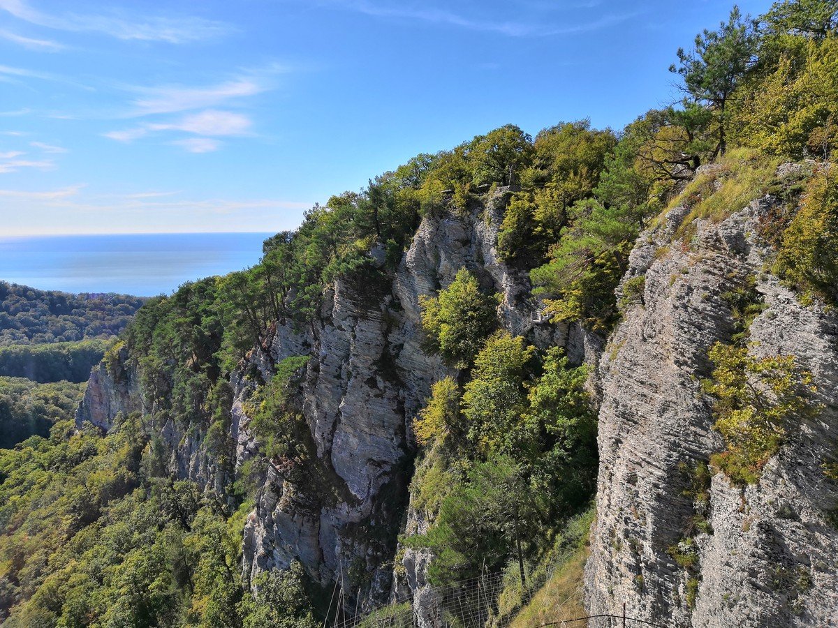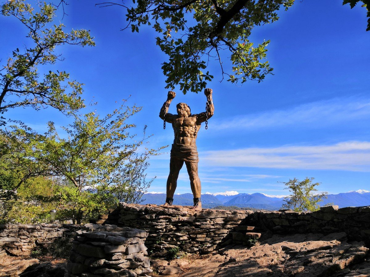 Орлиные скалы — удивительное по красоте место. Вы пройдете по живописной тропе, созданной горцами более 150 лет назад, рассмотрите знаменитую пицундскую сосну, подышите свежим воздухом и ощутите благословенную прохладу даже в самые жаркие дни. А на вершине вас ждут скульптура прикованного цепями к скале Прометея, вид на Черное море и потрясающая панорама Кавказских гор, частично покрытых снегом даже в летние дни.