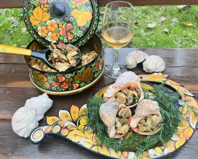 - Семейная винодельня с цветущим садом — вы попробуете до 10 видов домашних напитков из винограда (вино, чача, коньяк, настойки). А ещё черноморских рапанов, которых выловил и приготовил сам винодел. Также вам предложат разные локальные закуски