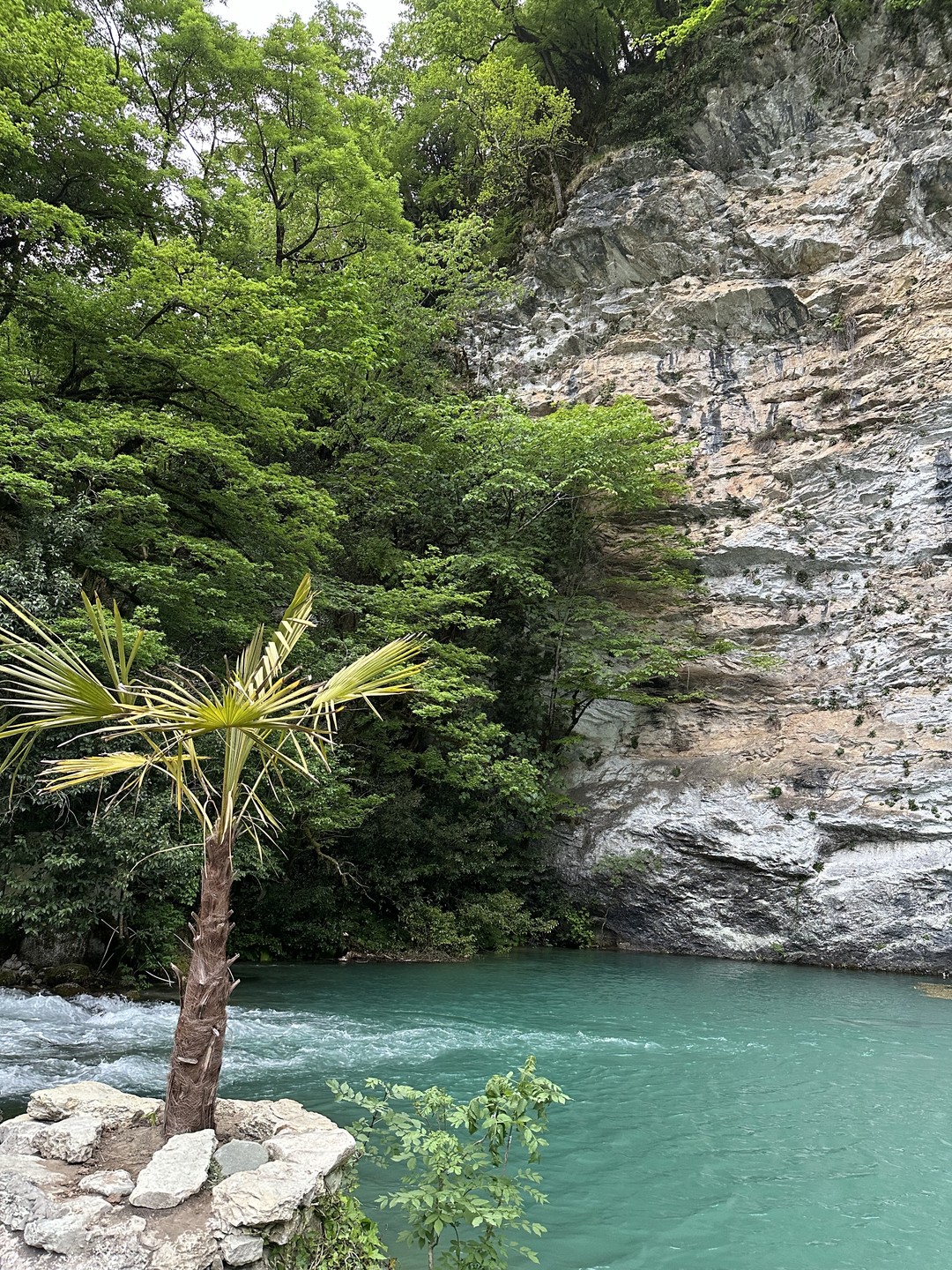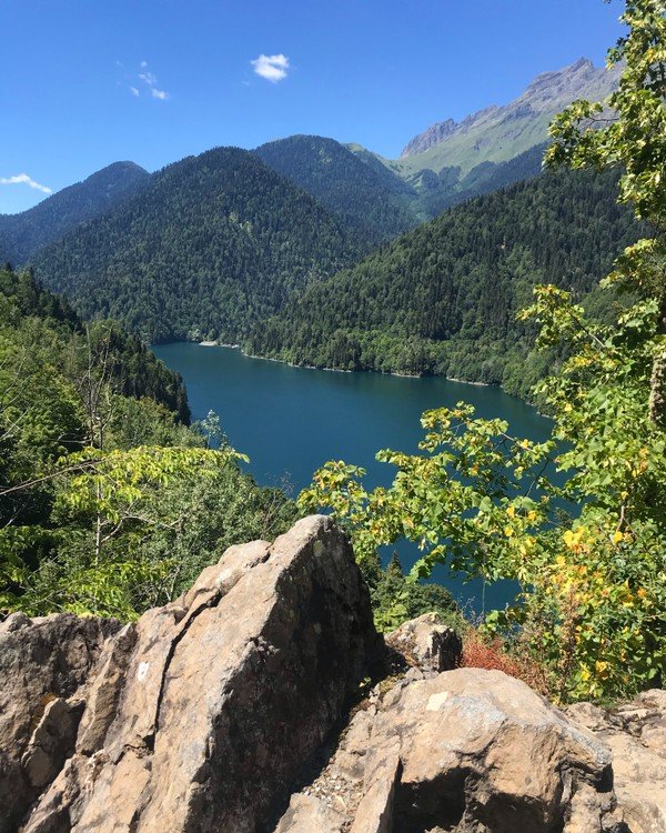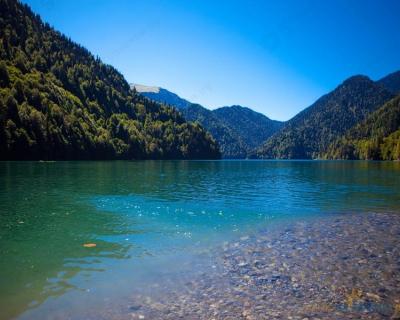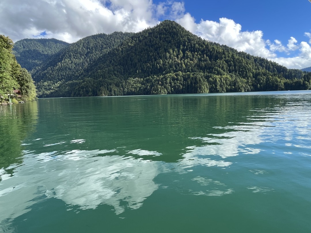 Ещё немного — и вы у природной жемчужины Абхазии, озера в окружении остроконечных гор с белоснежными вершинами. У вас будет достаточно времени, чтобы насладиться красотами Рицинского национального парка, отдохнуть на берегу и сделать фотографии места, название которого уже давно стало нарицательным.