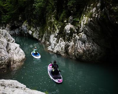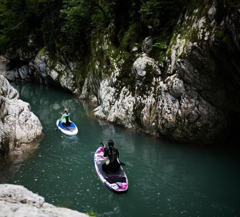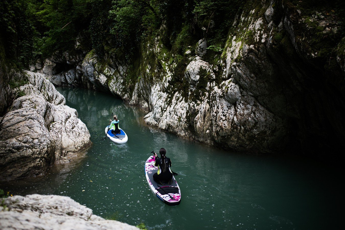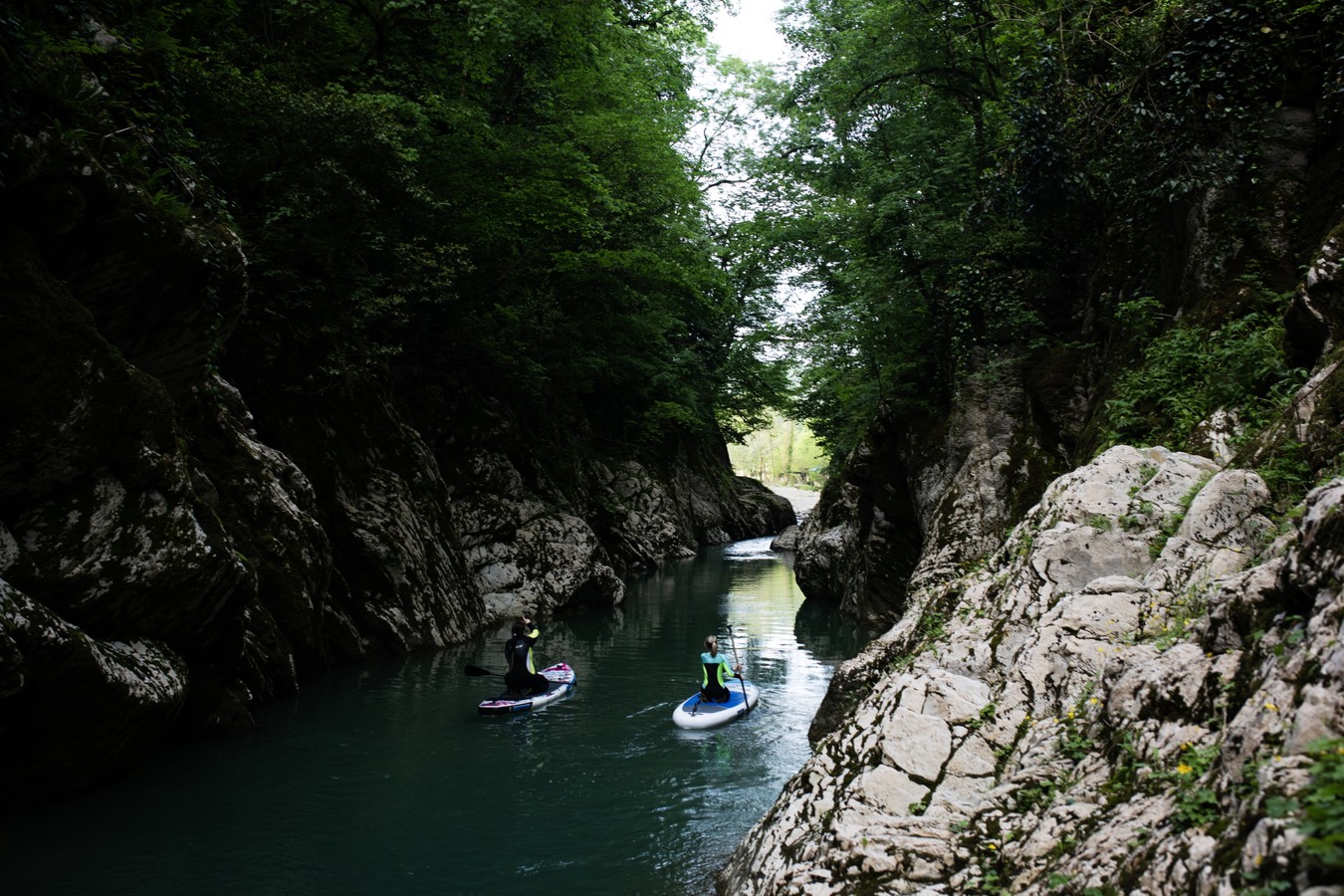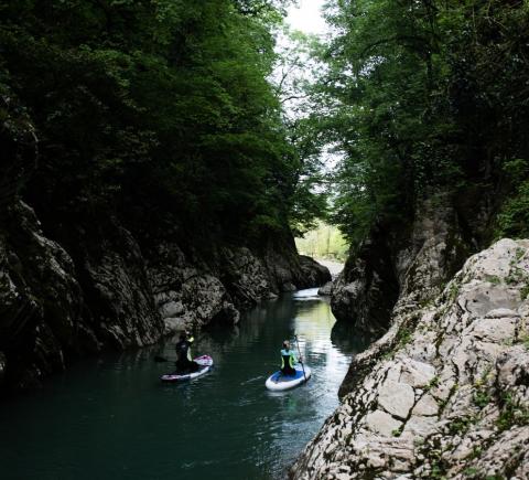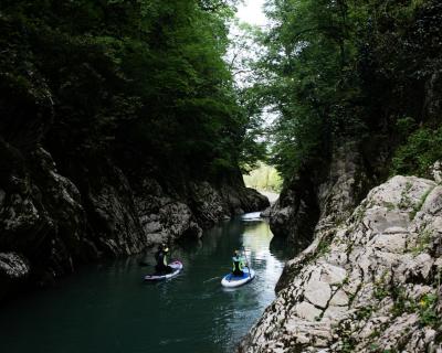 По каньону Хосты — на сап-бордах в гидрокостюмах