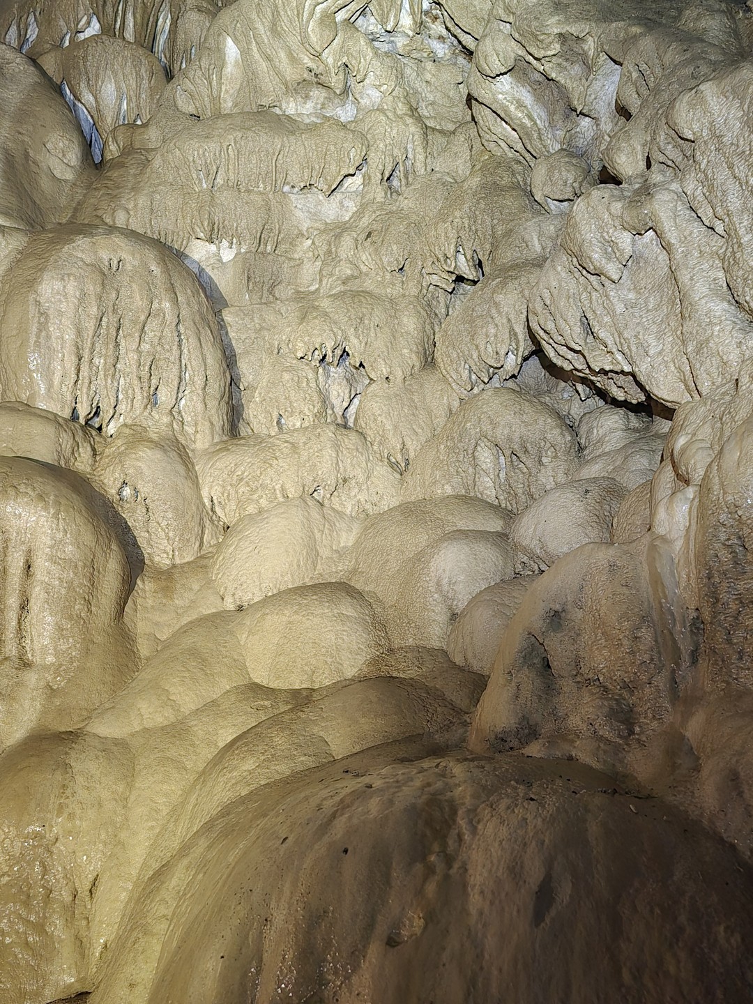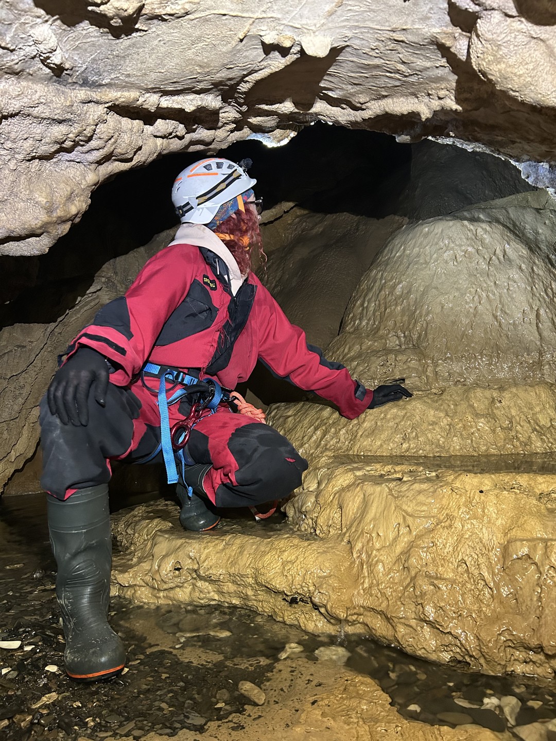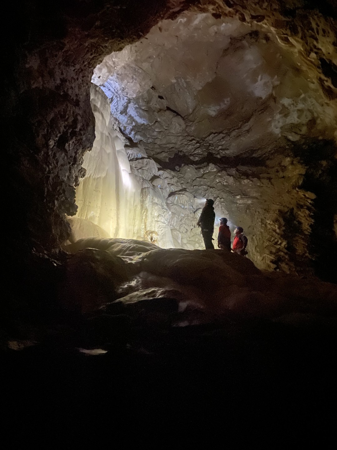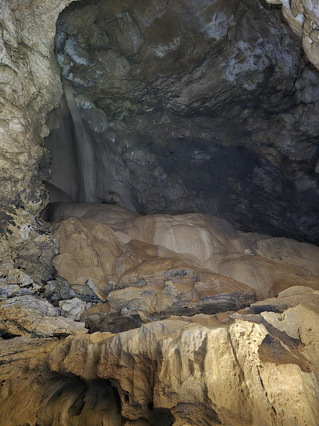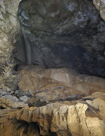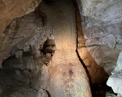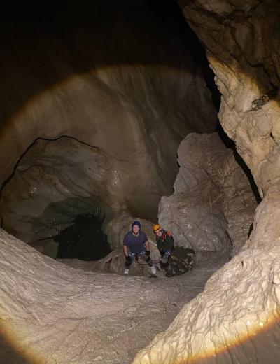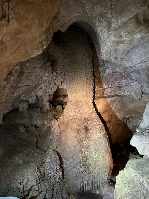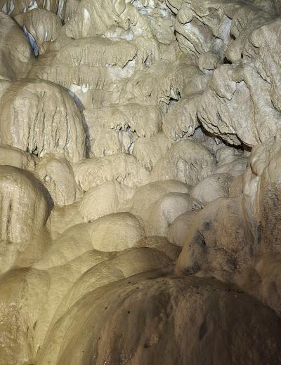 - Преодолев финальный спуск подземного каньона, мы попадём в грот Очажный, не менее величественный, чем его предшественник. Здесь вы встретите и подземный водопад, и невероятной красоты натёчные образования.