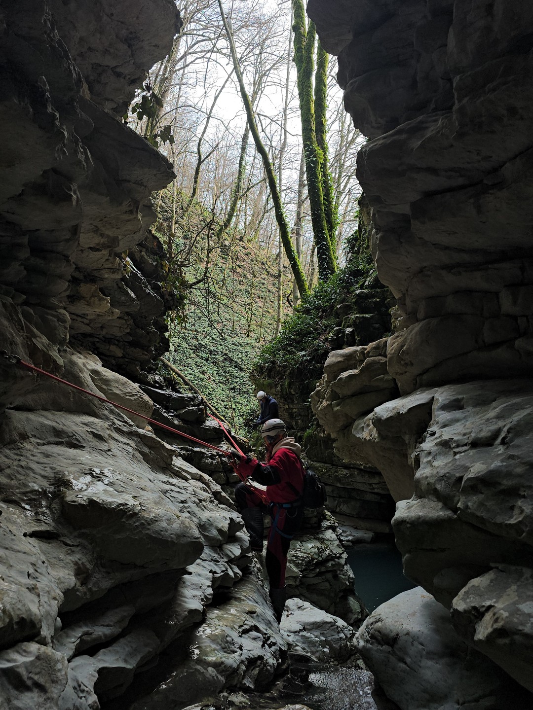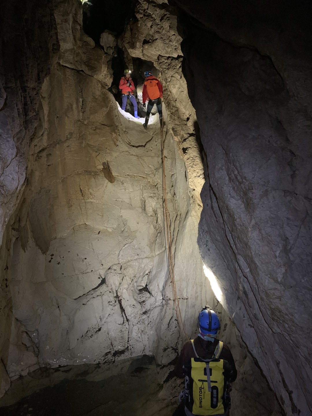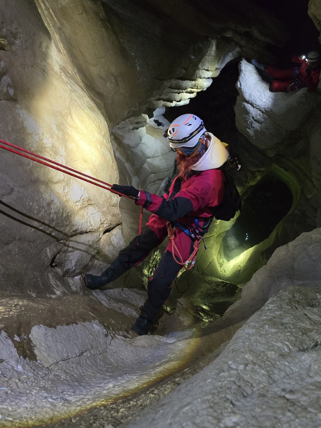- Далее нас ждут спуски на верёвках, иногда заканчивающиеся природными ванночками (их мы обойдём).