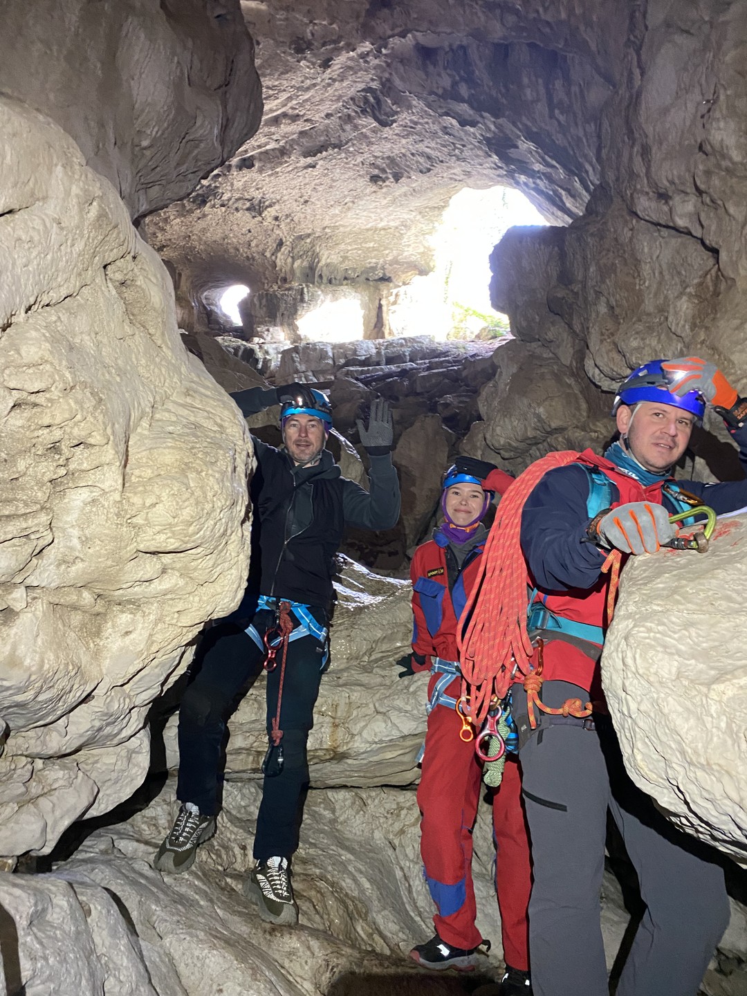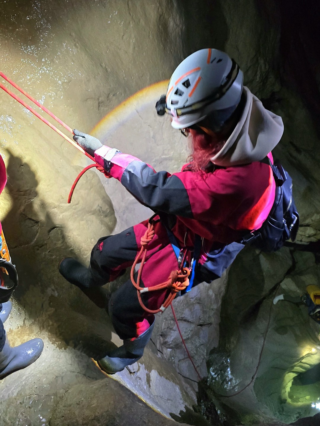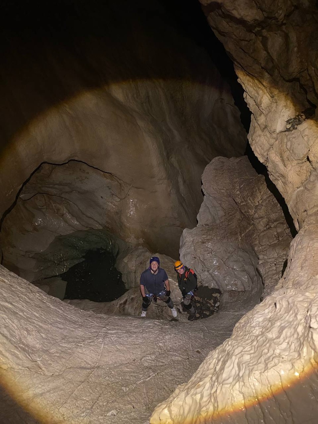 - Далее нас ждут спуски на верёвках, иногда заканчивающиеся природными ванночками (их мы обойдём).