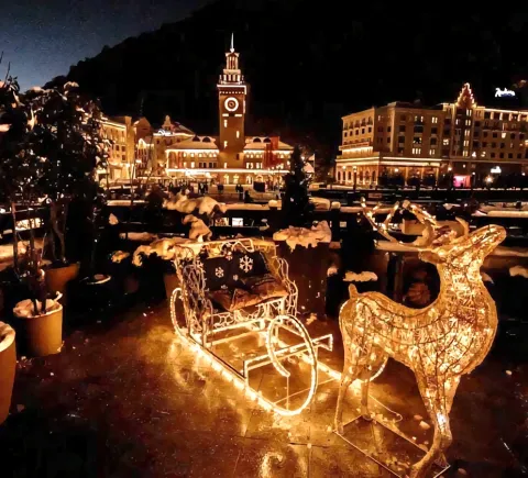 После трансфера из Сочи или Адлера мы окажемся в самом сердца зимнего праздника — у Ратуши. Вас ждут: