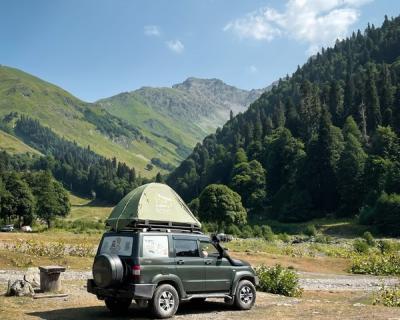 - До места начала маршрута мы добираемся на комфортабельном внедорожнике УАЗ «Патриот» или минивэне Volkswagen Transporter