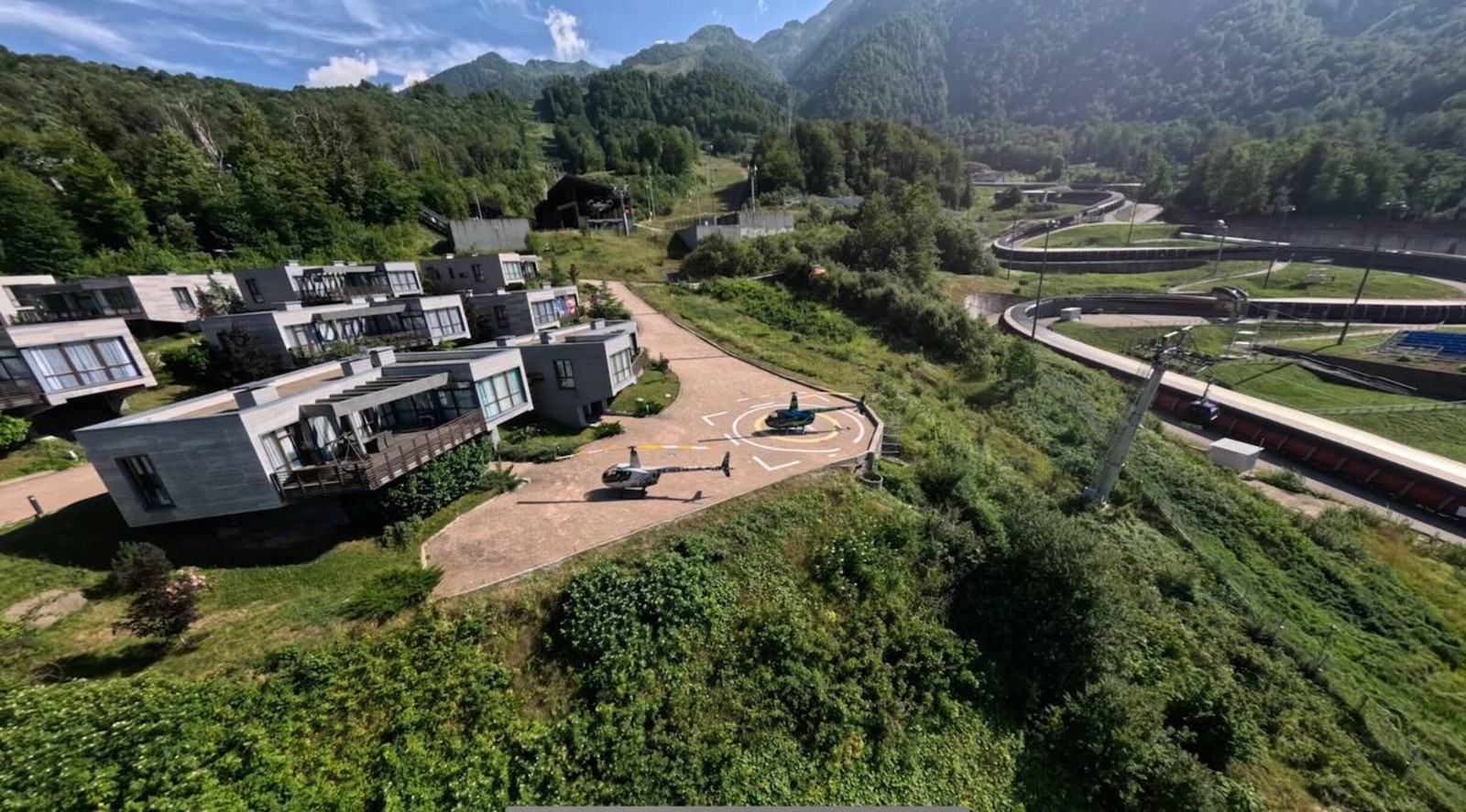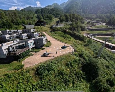 - Полюбуемся сверху Сириус Автодромом (трасса Формула 1), парком развлечений «Сочи Парк» и отелем «Богатырь»