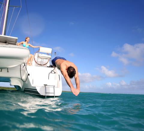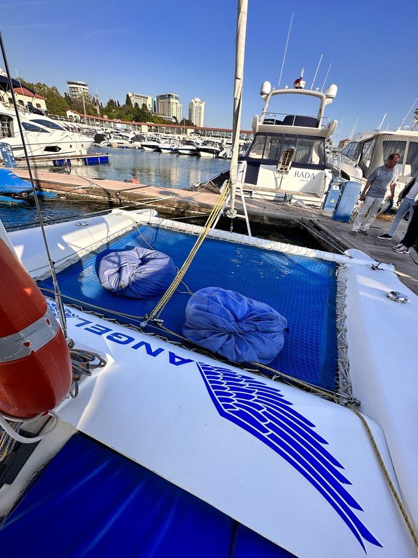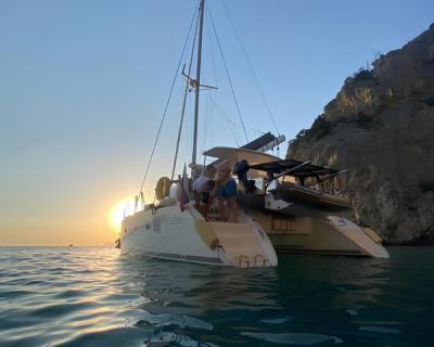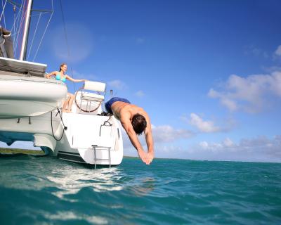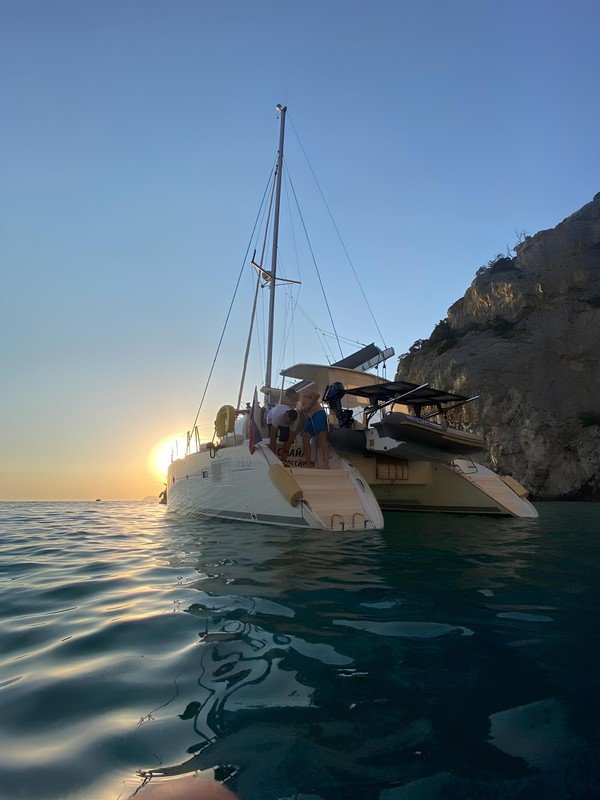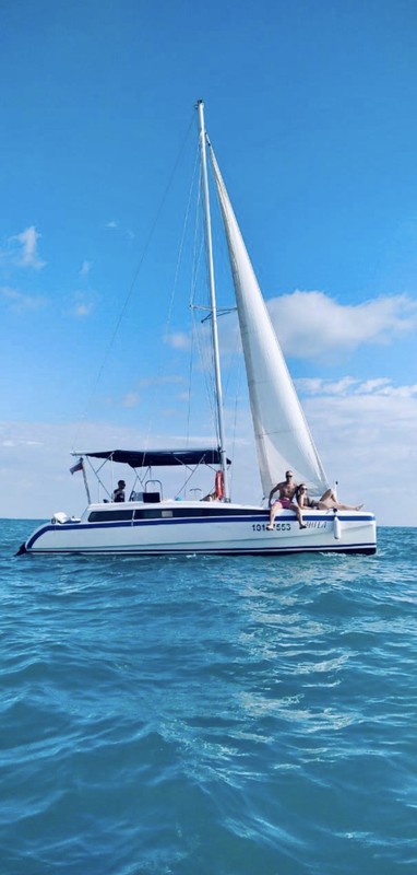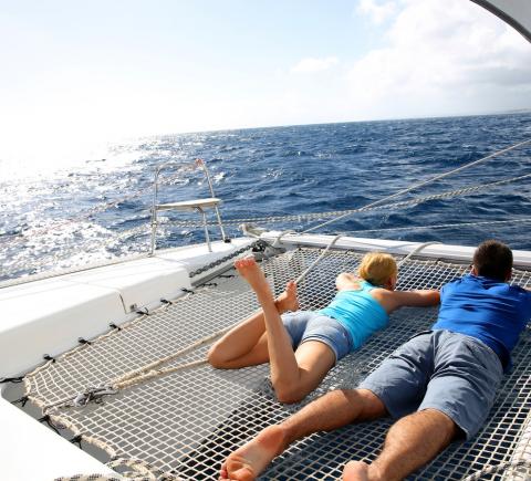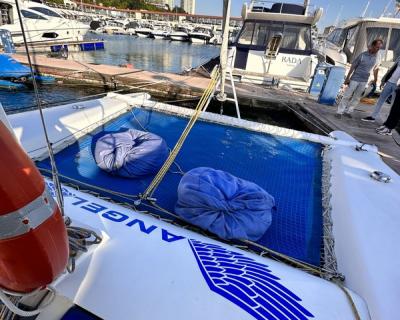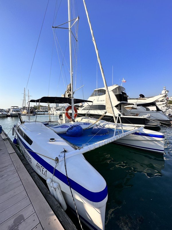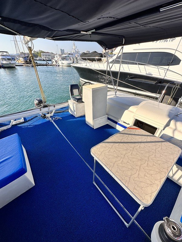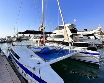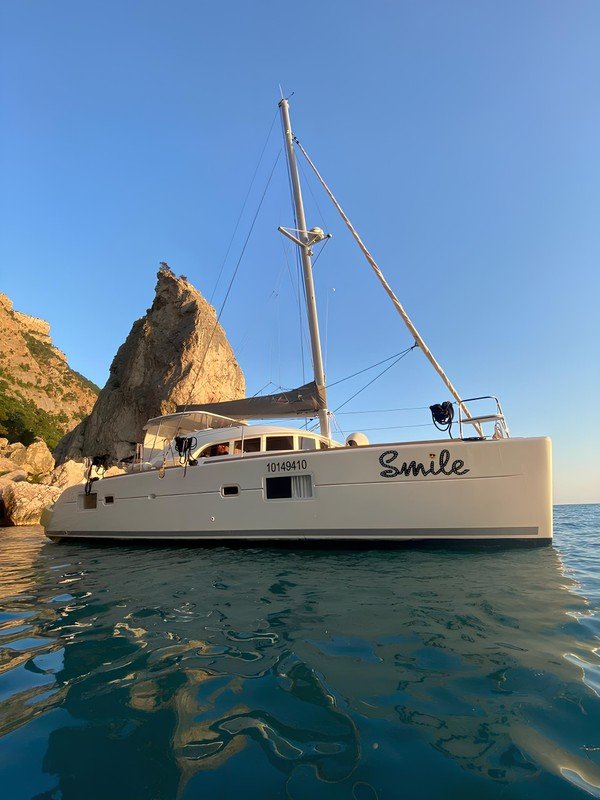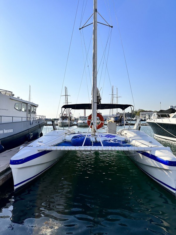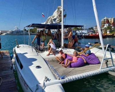 Главное преимущество катамарана — простор и отсутствие лестниц. Два корпуса, соединённые общей палубой, делают его ещё более устойчивым. А сетка на задней части яхты — просто мечта! Представьте, как вы лежите на ней как в гамаке, а под вами плещутся волны. Наш капитан отвезёт вас в самые рыбные места. Но можно и просто насладиться морской прогулкой. И не забудьте захватить на борт шампанское с фруктами!