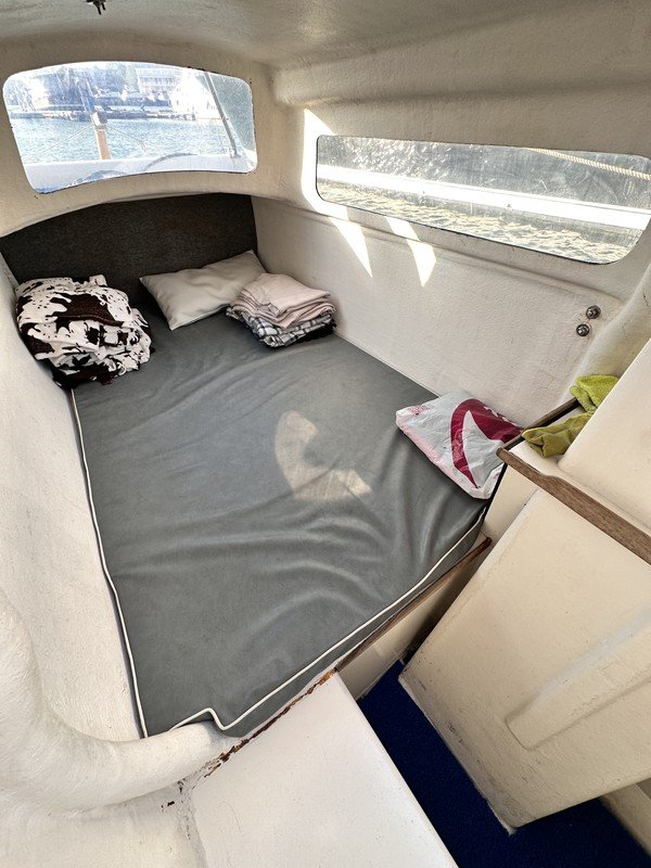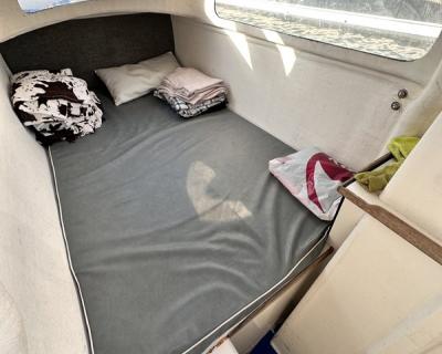 Тент на задней части катамарана защитит вас от жары и дождя, а мягкие подушки понравятся и взрослым, и детям. На борту в вашем распоряжении будет два кресла-мешка, диваны для большой компании, полный набор посуды, раскладной стол, полотенца, удочки, снасти, колонка JBL Bluetooth, а также санузел (душ, туалет).