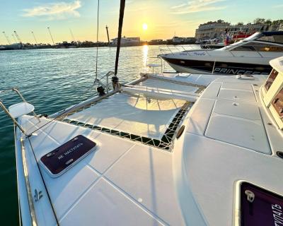 Побалуйте себя незабываемой поездкой на современном катамаране! Это идеальный выбор для тех, кто хочет насладиться комфортом и свободой. Вы полюбуетесь водными пейзажами и подышите свежим воздухом. По желанию научитесь управлять судном и получите морской сертификат.