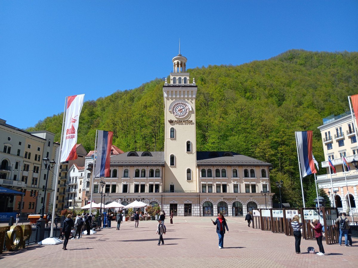 Последней вы возьмёте «космическую» высоту — панорамную площадку на крыше центра «Галактика». Перед вами вырастут вершины Розы Хутор Большой и Малый Чугуш, а с другой стороны — пятиглавая красавица Аибга.