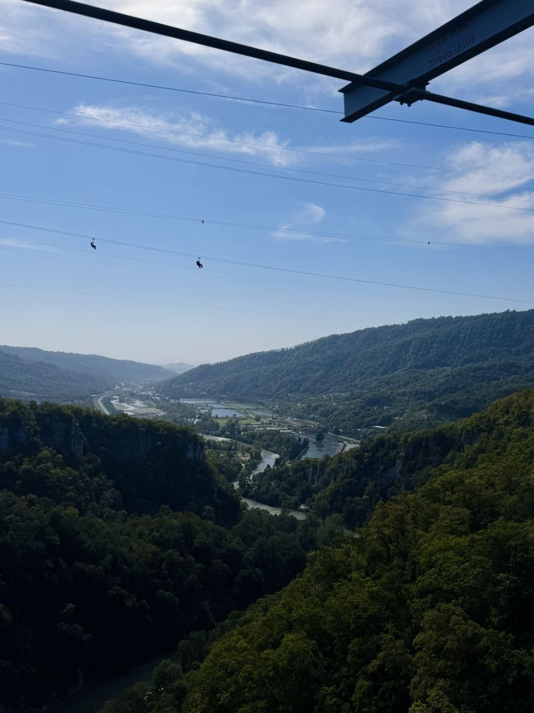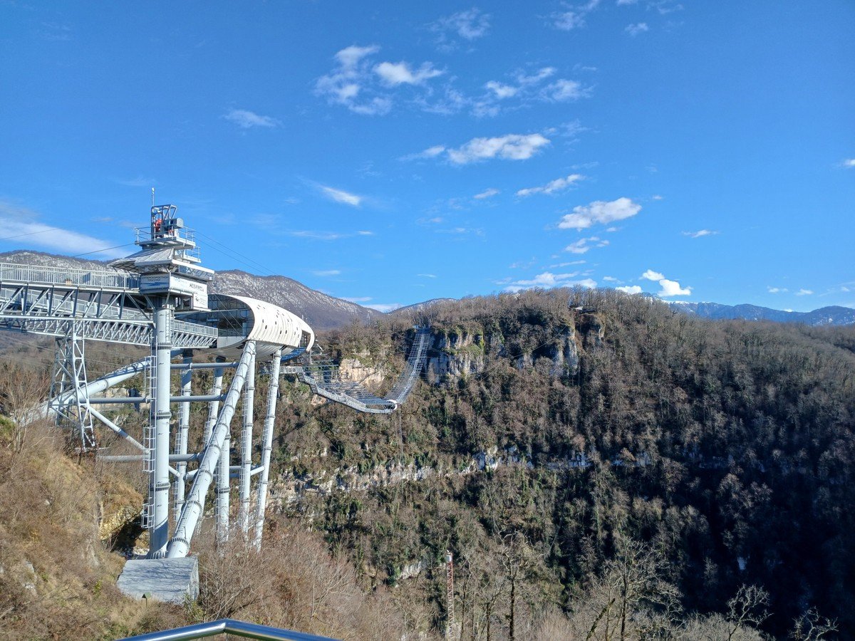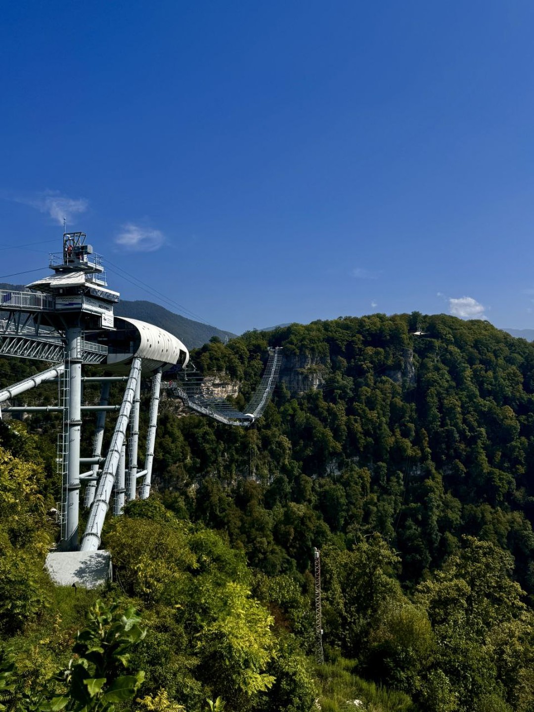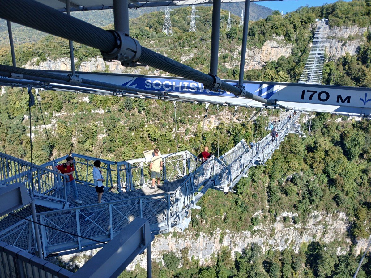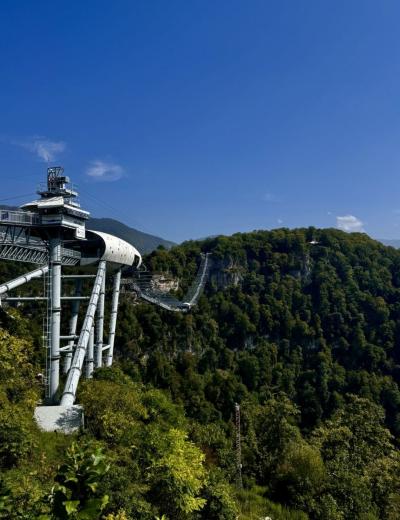 Несколько лет назад в Сочи открылся экстрим-парк. Изюминка Скайпарка — самый протяженный в мире пешеходный подвесной мост над Ахштырским ущельем. Вам откроется вид на долину полноводной реки Мзымта, Старое Краснополянское шоссе, петляющее по горно-лесистой местности, и стадион «Фишт» в Олимпийском парке.