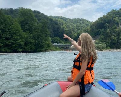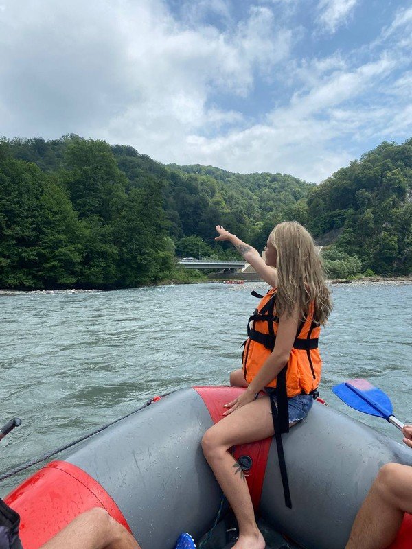 - Сплав по реке Мзымта безопасен даже для детей старше 7 лет (они садятся в середину плота)