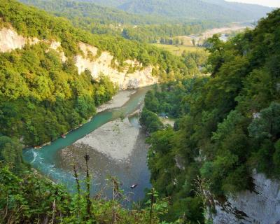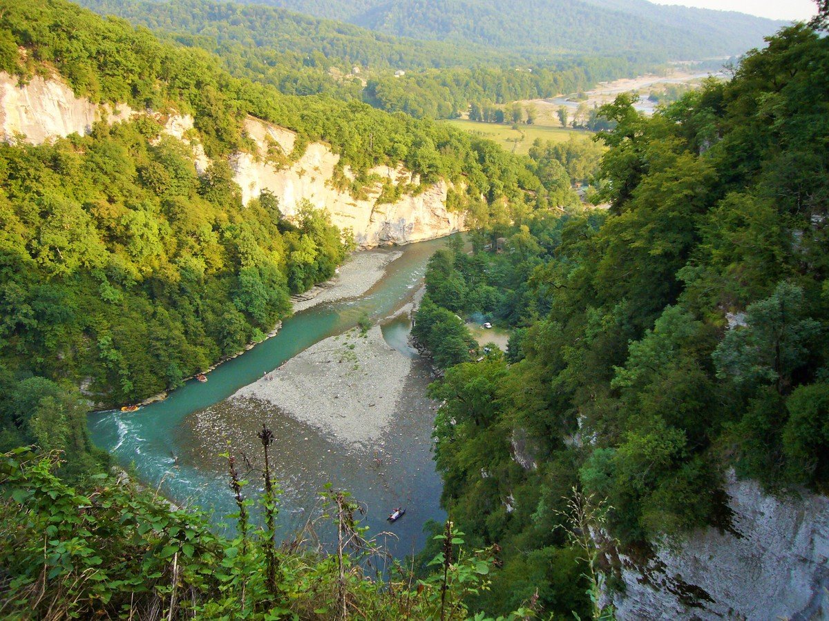 12:10 — посещение Ахштырского каньона на берегу реки Мзымта