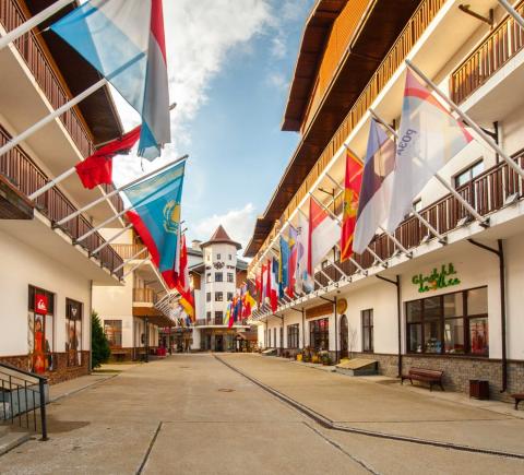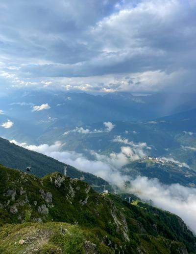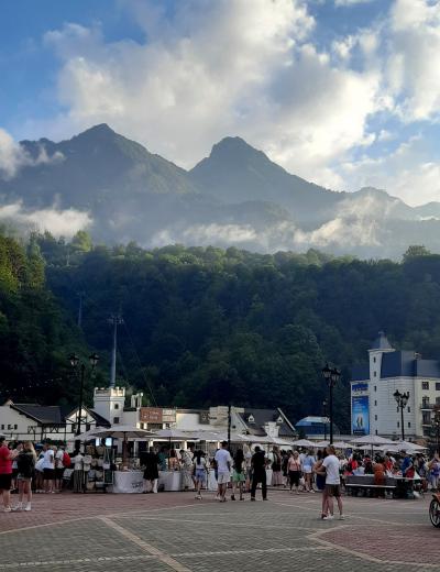 15:40 — прибытие на курорт «Роза Хутор», подъём по канатной дороге до Горной Олимпийской деревни. По желанию подъём до Роза Пик, посещение этнопарка и парка альпак