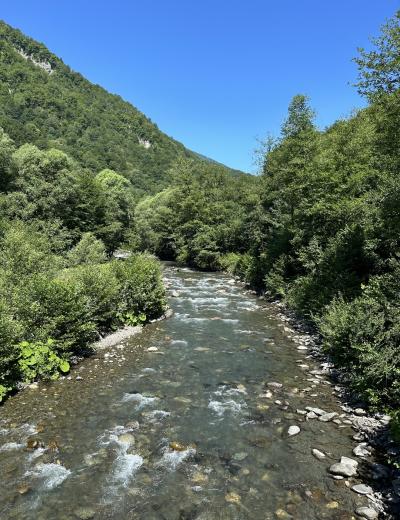 Первым делом я отвезу вас на пасеку, где вы попробуете эксклюзивные сорта краснополянского мёда — каштановый, чернично-ежевичный и альпийский. Вы узнаете о традициях местного пчеловодства и природных условиях, горном разнотравье и реликтовых лесах, позволяющих производить особые сорта мёда. А также сможете приобрести натуральную косметику и другие продукты пчеловодства.