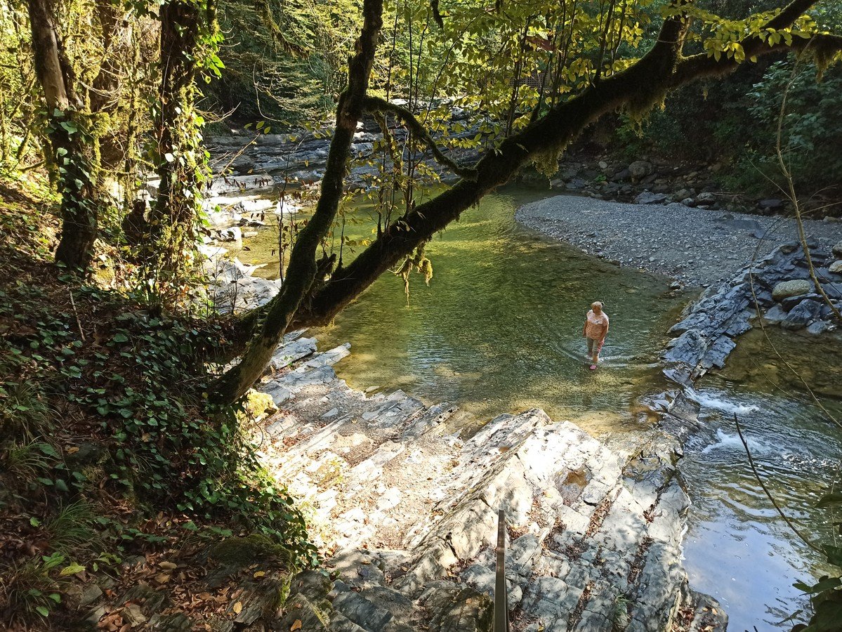 - Знаменитые Дагомысские корыта — природные каменные ванны с чистой водой в русле реки. Здесь тоже есть возможность искупаться, если уровень воды не высокий