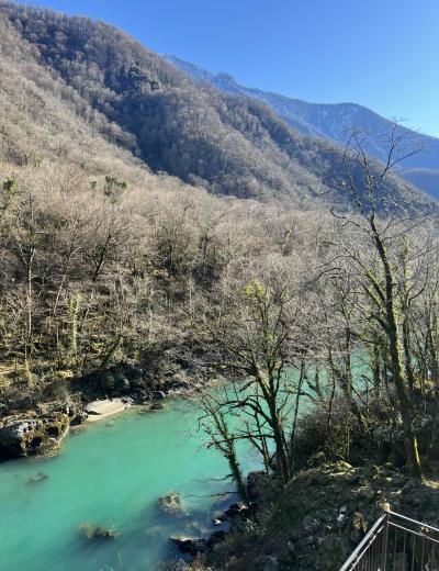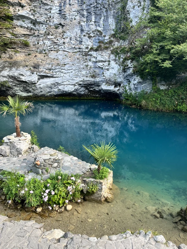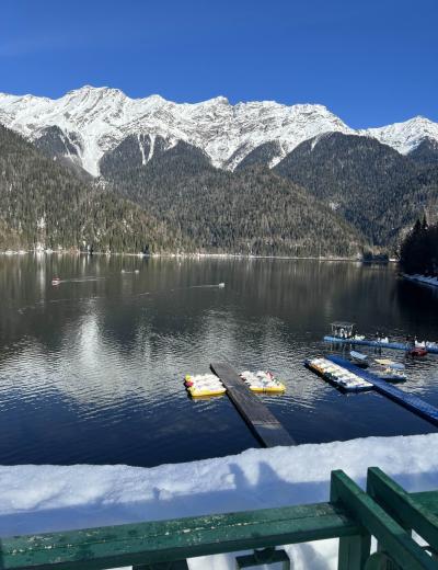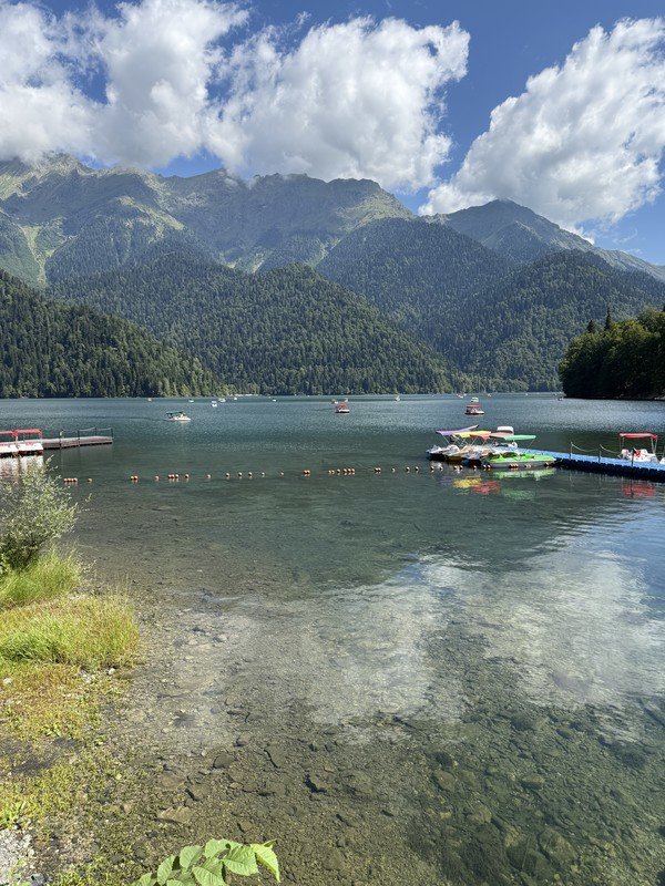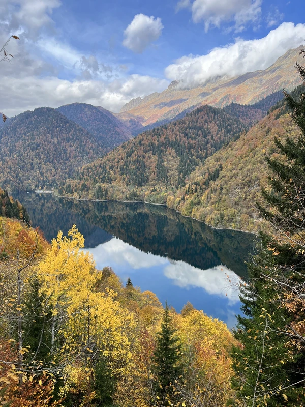 Живописный маршрут к озеру проходит по ущелью вдоль трёх рек. По пути вы увидите Голубое озеро, поражающие крутизной скалы Юпшарского каньона, бурные реки и реликтовые вечнозеленые растения. А на берегу Рицы мы пообедаем в национальной апацхе.