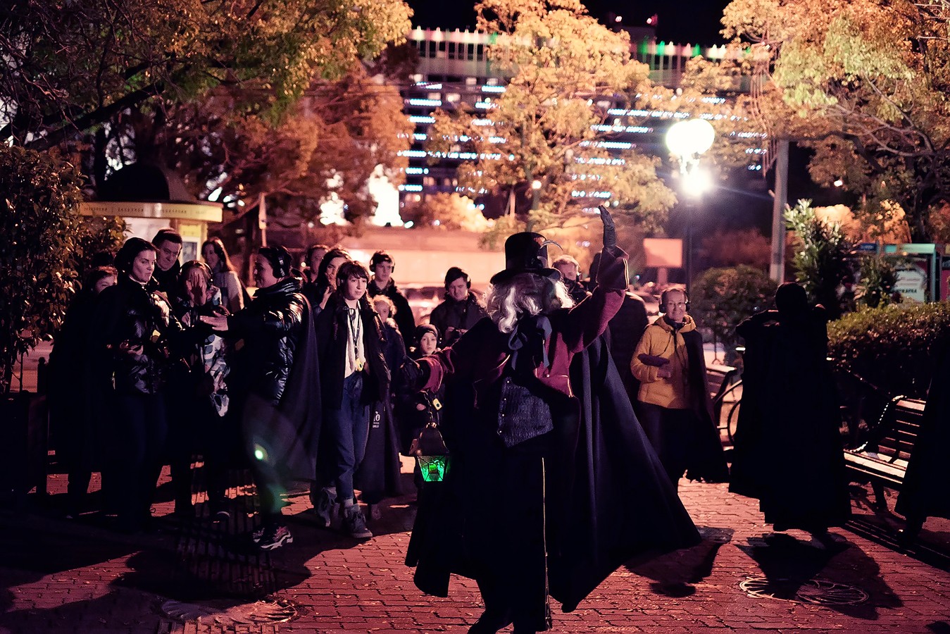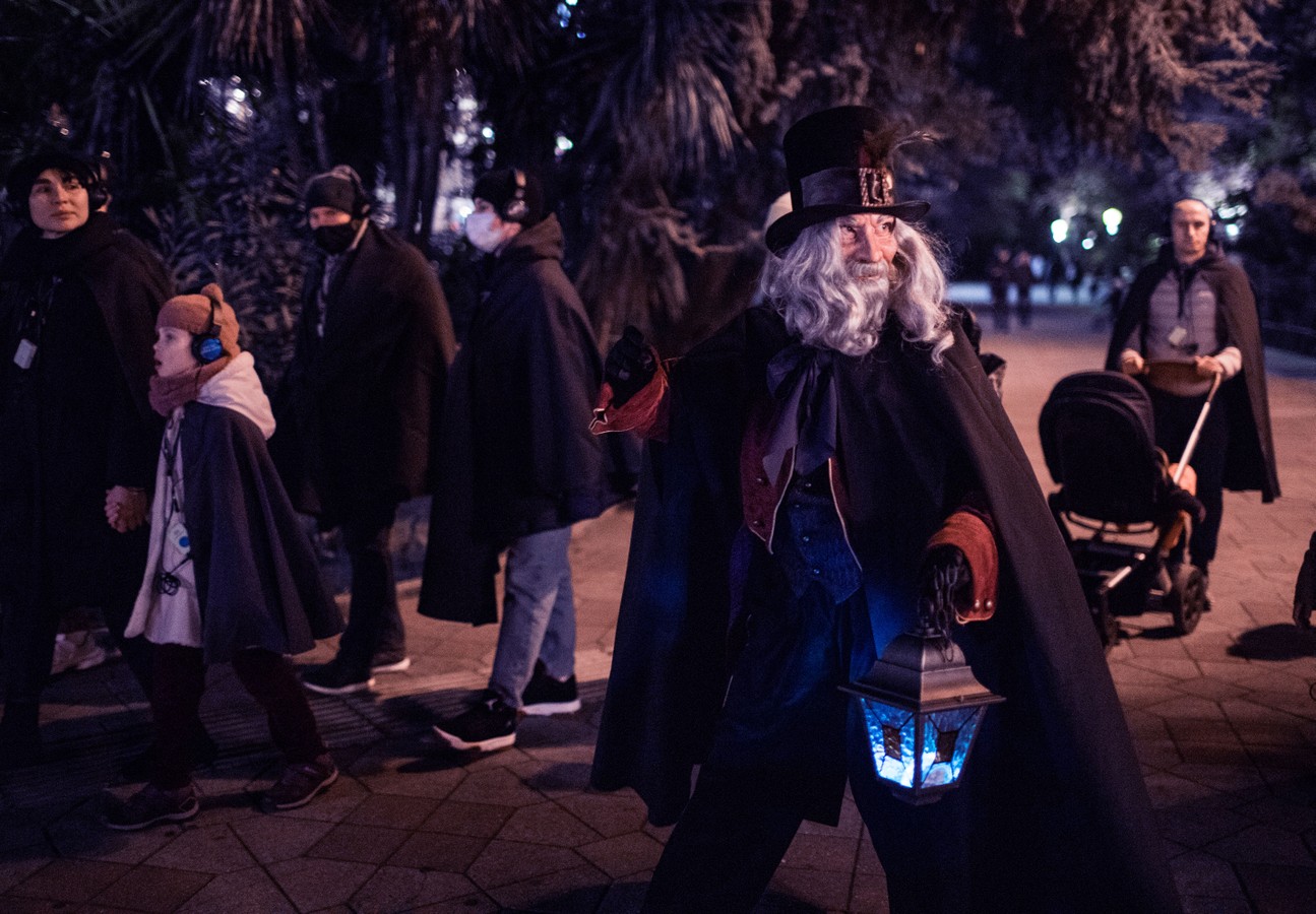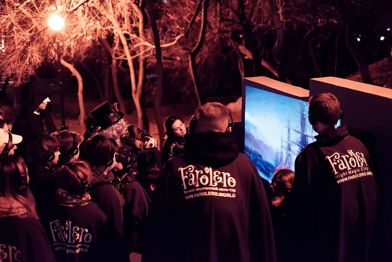 Чтобы по-настоящему ощутить себя в сказочном мире Фаролеро, вы отправитесь гулять по улицам города в плащах-мантиях и шумоподавляющих наушниках. На протяжении всей экскурсии вы будете слышать чарующую музыку и голос фонарщика, которые перенесут вас в другую реальность. Гид расскажет массу удивительных историй, и вы не заметите, как город превратится в декорации к загадочному спектаклю.