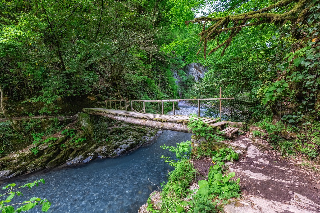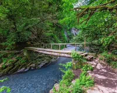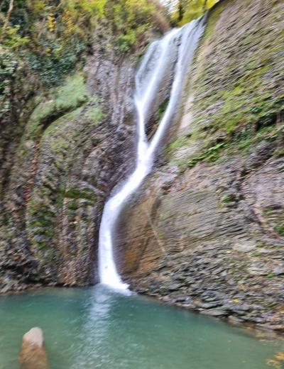 По дороге, обрамленной рододендронами, мы пройдем к одному из самых высоких водопадов Сочи — Ореховскому. Шумный поток воды стремится в реку Безуменка с высоты почти 30 метров, а пышный лес подступает к самой кромке ярко-бирюзовой воды. Здесь вы отдохнете в окружении первозданной природы, сделаете отличные фотографии и понаблюдаете со смотровой площадки за причудливыми и мягкими изгибами реки вдоль ущелья.