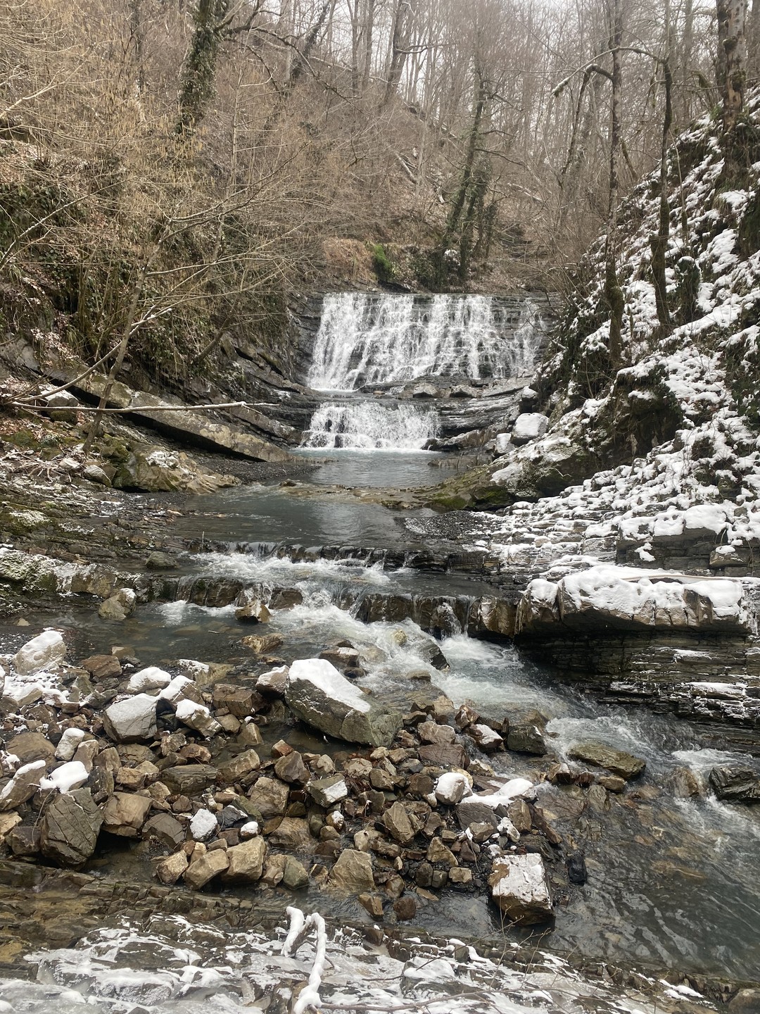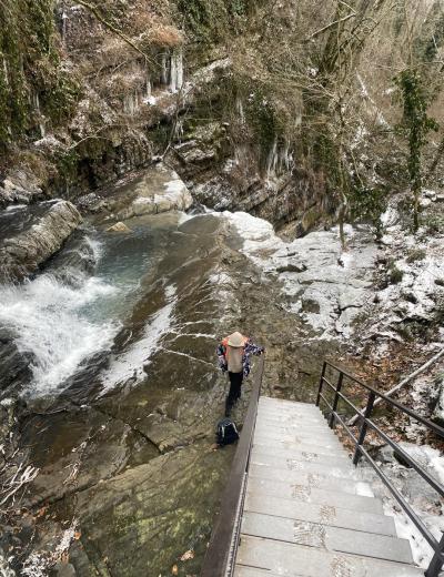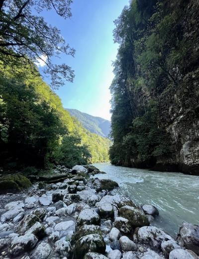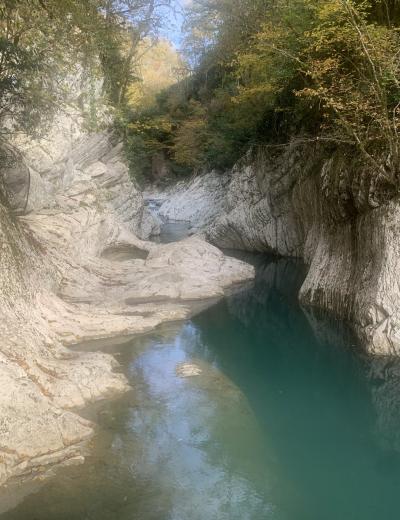 - От Красной Поляны до Чёрного моря: мы поднимемся к заснеженным пикам кавказских гор и погуляем по парку водопадов Менделиха на высоте 2 тысячи метров. Проедем по канатной дороге с видами на олимпийские объекты. Пообедав, вы покатаетесь на лошадях и исследуете руины византийской крепости. Попьете минеральной воды из окутанного легендами источника Чвижепсе и полюбуетесь закатом, ужиная в уютном семейном кафе на берегу моря.