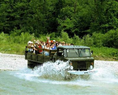 - От 33 водопадов до этнографического комплекса — это путешествие о природе и традициях. Вы ощутите прохладу колхидского леса, насладитесь шумом каскада водопадов и промчитесь по горной реке на внедорожнике. А вечером познакомитесь с традициями черкесов: вас ждет ужин с блюдами местной кухни и шоу народных песен и танцев с ножами и кувшинами вина.