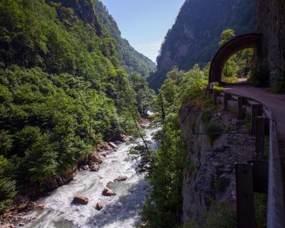 Основной веломаршрут от Красной Поляны до Черного моря пройдет по асфальтированным участкам заброшенного Краснополянского шоссе с уклоном в сторону моря. Мы встретим природные жемчужины — водопад Девичьи слезы, нарзанный источник Чвижепсе, ущелье Ахцу и долину горной реки Мзымта. Будем ехать в удобном темпе и останавливаться в самых красивых местах, чтобы сделать фотографии и насладиться невероятными видами!