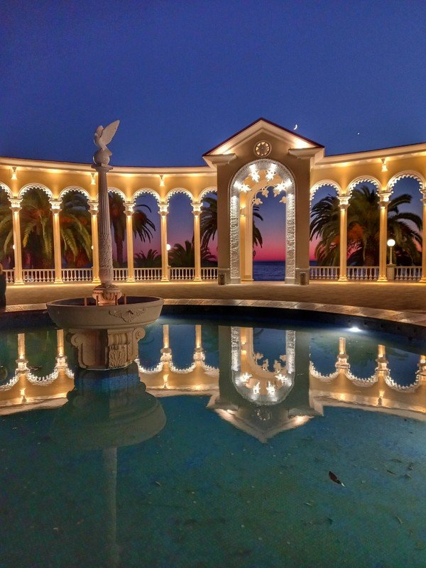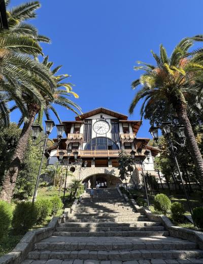 - Начнём с посещения самого известного города Абхазии, Гагры, где прогуляемся по парку принца Ольденбургского. Сфотографируемся у Колоннады — визитной карточки города — и ресторана «Гагрипш», с которого началась история курорта.
