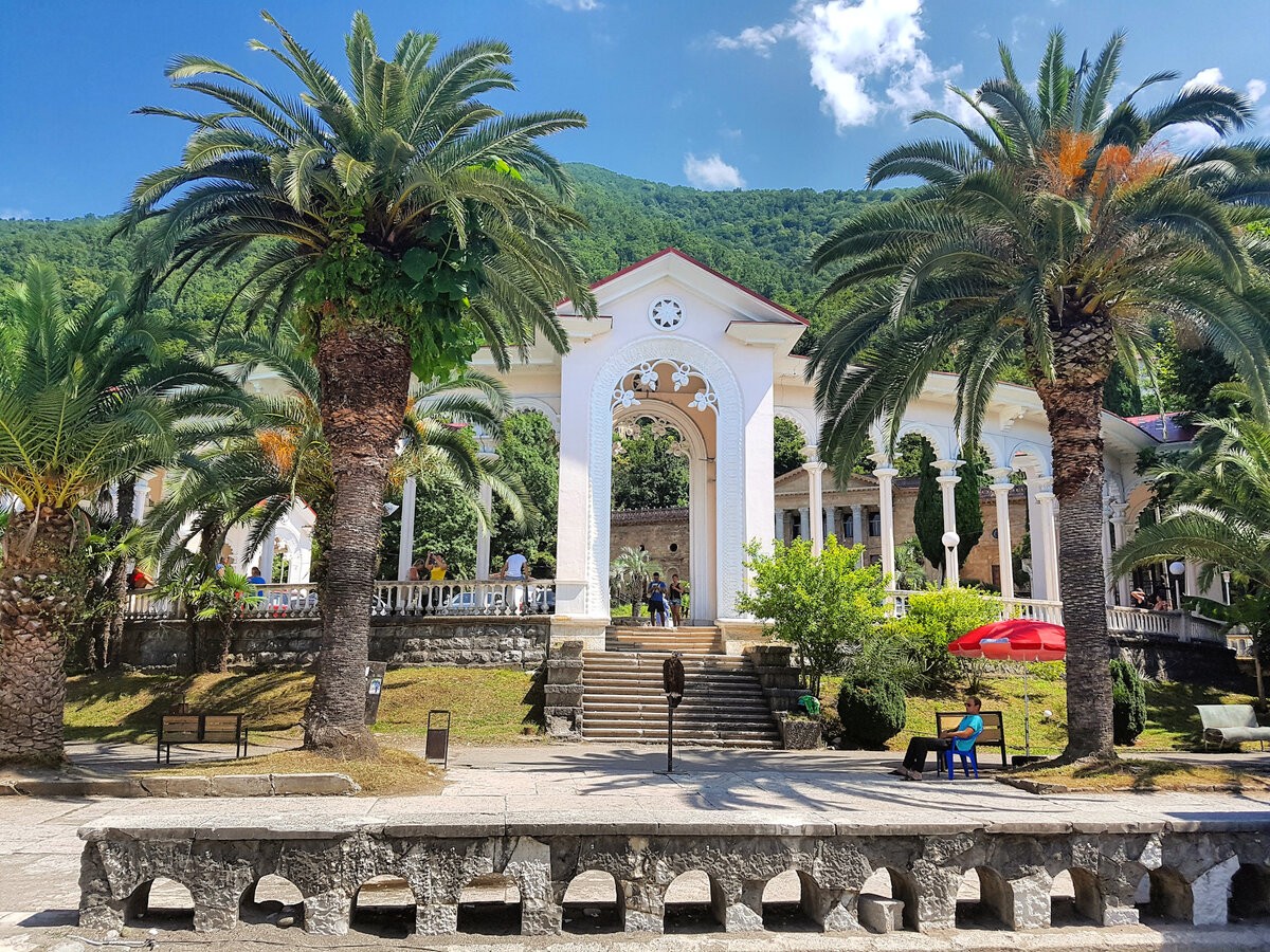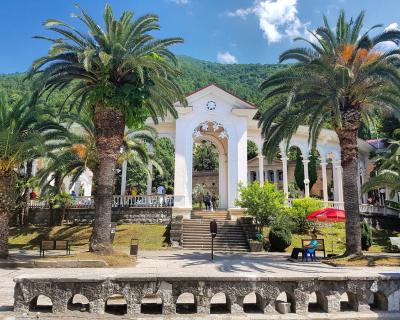 Первая остановка — в Гагре, где вы окинете взглядом окрестности со смотровой площадки, узнаете историю открытия курорта у знаменитого ресторана Гагрипш, а еще осмотрите один из символов города, Гагрскую коллонаду, где вспомним кадры известных советских фильмов, и прогуляетесь по Приморскому парку.