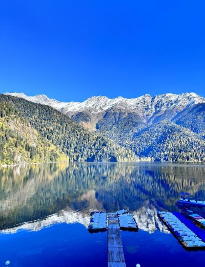 Визитные карточки Абхазии невозможно представить без красавицы Рицы — высокогорного озера, влюбившего в себя миллионы людей. На пути к нему вы встретите шумные горные реки, изобилие растительности и красивые заснеженные вершины гор. Посетите три известных водопада — Девичьи Слёзы, Мужские Слёзы и Молочный. Отдельное внимание уделим Голубому озеру с кристальной водой магических оттенков. А в завершение остановимся у Юпшарского каньона, более известного как Каменный мешок.