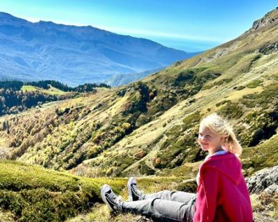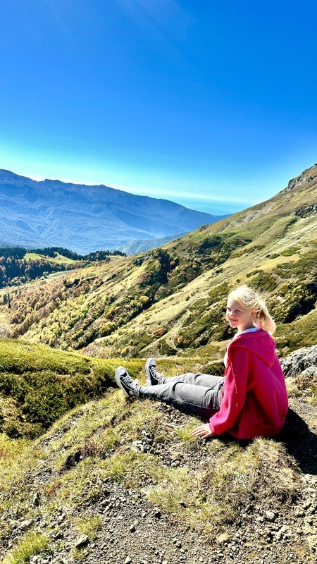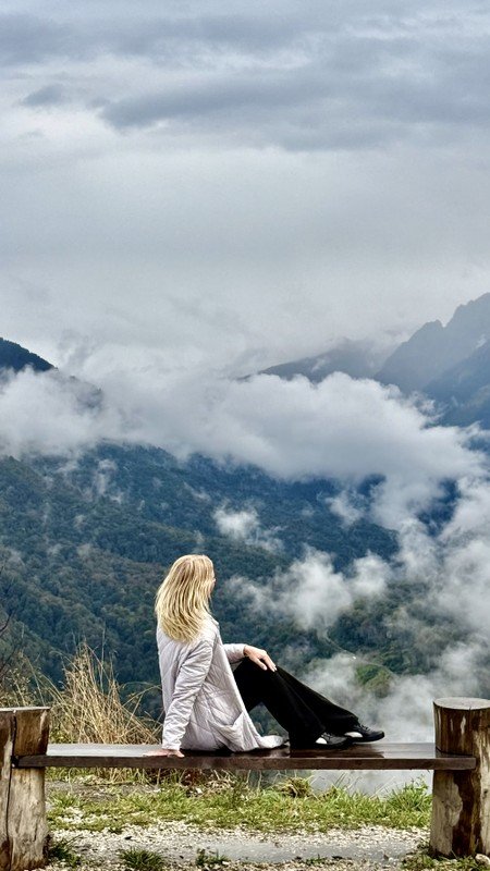Главный аккорд маршрута — путь к облакам. На вершине открываются виды, от которых перехватывает дыхание: Кавказский хребет, море вдали и снежные пики.