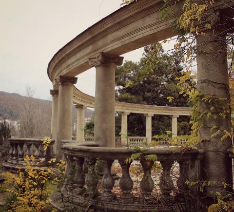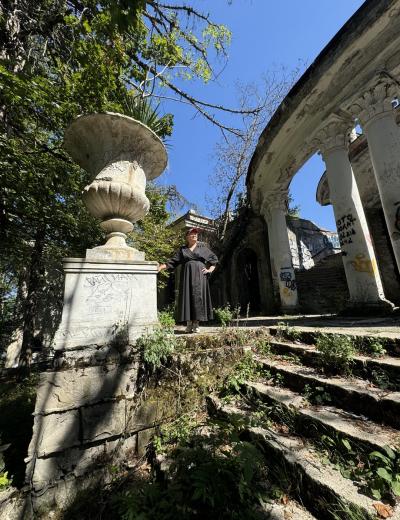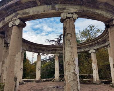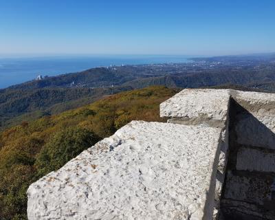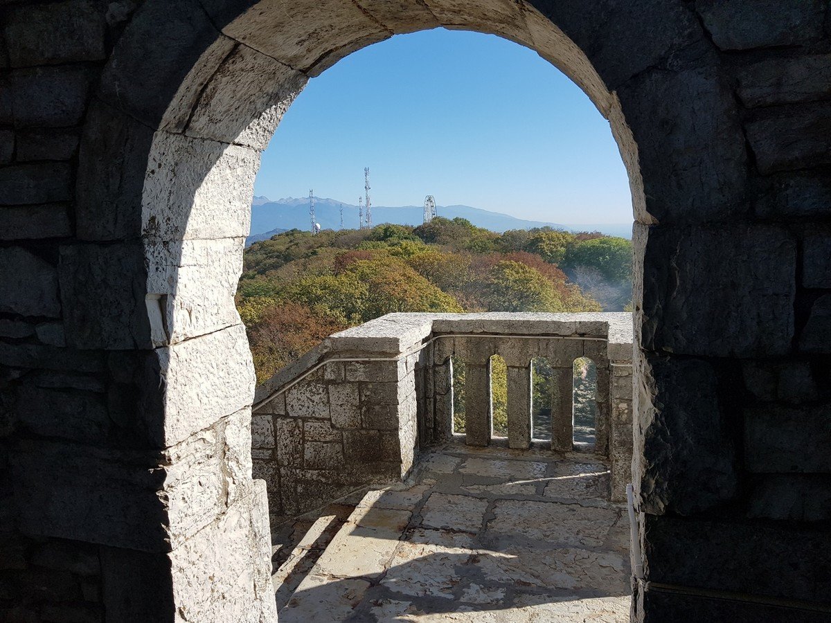 Далее по красивому серпантину мы поднимемся на гору Ахун. Со смотровой башни, построенной по приказу Сталина, полюбуемся потрясающим видом на город и море. У вас будет возможность полюбоваться этими видами с большого колеса обозрения на вершине горы. Не все знают, но в этом лесу есть ещё одно монументальное строение — старинный ресторан, печальную историю которого я открою вам по дороге на гору. А ещё расскажу, почему Ахун так называется и что же тут было раньше.