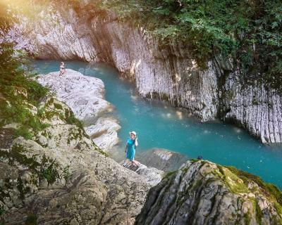 Меньше часа езды от центра Сочи по отличной дороге на комфортном автомобиле — и вы у Воронцовской пещеры, в эпицентре древнейшей истории Кавказского Причерноморья. Подсвеченные сталактиты и сталагнаты и звуки пещерной реки подарят вам ощущение древнего сказочного леса! За каждым поворотом тропинки, под каждым мостиком вас будут ждать волшебные персонажи — их облик рождают тени причудливых наростов скальной породы. А ещё в пещере совершенно упоительный целебный воздух, уничтожающий все микробы.