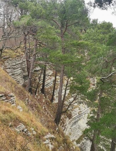 За время похода мы пройдём 7 км, а набор/сброс высоты составит 350 м. Маршрут пролегает по грунтово-скальным тропам в зоне леса.