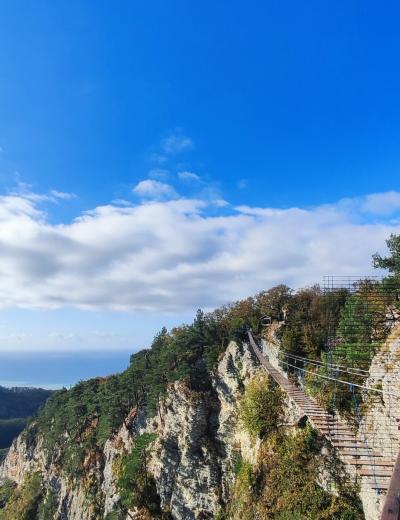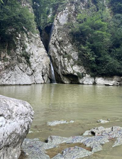 - достопримечательности на маршруте: дикий сероводородный источник, статуя Прометея, Орлиные скалы, водопады на реке Агура