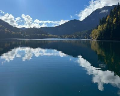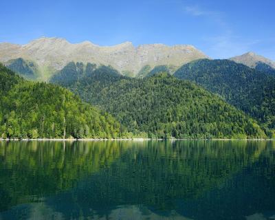 Озеро Рица. Ещё одно популярное и завораживающее место нашего края. Полюбуетесь на зеркальную гладь, в которой отражаются изумрудные леса, и сделаете много ярких фото в этих живописных природных декорациях.